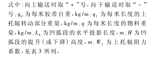 平穩(wěn)運(yùn)行。實(shí)際的設(shè)計(jì)計(jì)算表明,對(duì)于一般的皮帶輸送機(jī)凹弧段半徑的計(jì)算,式( 1) 的計(jì)算結(jié)果可滿足要求。但在某些條件下,式( 2) 、( 3) 的計(jì)算結(jié)果也會(huì)大于式( 1) 的所得,從而導(dǎo)致半徑過大給工藝布置帶來一定的困難。查式( 2) 、( 3) ,可采取加大拉緊力的方法以增大Tc值,使其計(jì)算結(jié)果得到減小。下面將討論凹弧段起始點(diǎn)張力Tc的計(jì)算方法。