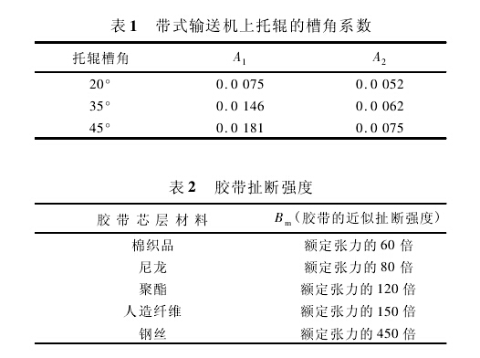 由式1可計(jì)算得出凹弧段的最小半徑。但是當(dāng)膠帶的張力過低時(shí),膠帶的邊緣處有可能產(chǎn)生皺曲,將無法保證皮帶輸送機(jī)的安全運(yùn)行,因此需對(duì)該半徑值進(jìn)行必要的校核。鑒于目前國內(nèi)尚無成熟的計(jì)算公式可循,建議采用美國輸送設(shè)備制造商協(xié)會(huì)聯(lián)合會(huì)推薦的公式對(duì)最小半徑進(jìn)行驗(yàn)算,以保證膠帶具有足夠張力,避免在凹弧段處的膠帶邊緣出現(xiàn)零張力'對(duì)織物芯膠帶,用下式進(jìn)行驗(yàn)算:
