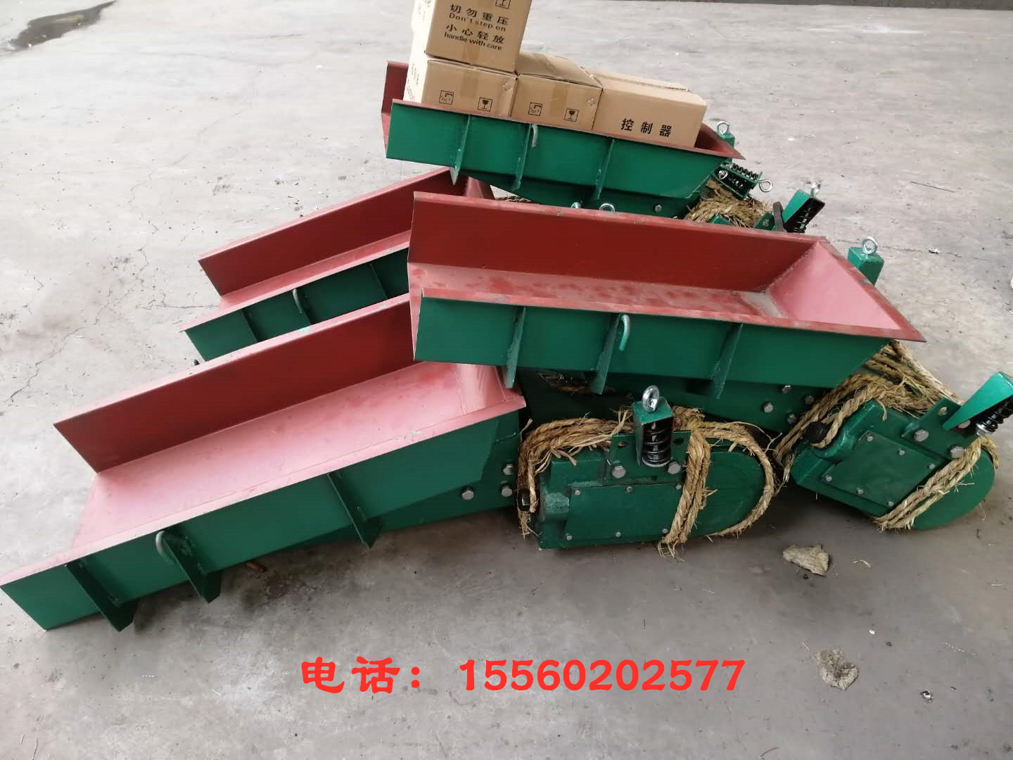 孟經理您訂購的GZ4號電磁振動給料機已經生產完畢。另外您要求的多配4個吊簧我們也給咱配好了。電磁振動給料機發的是韻達快運。電磁振動給料機料槽尺寸500*1100(寬*長),產量一小時50噸/小時。電磁振動給料機電壓220v。整機重量460Kg,請你收到貨以后確定一下。有問題了隨時聯系我。